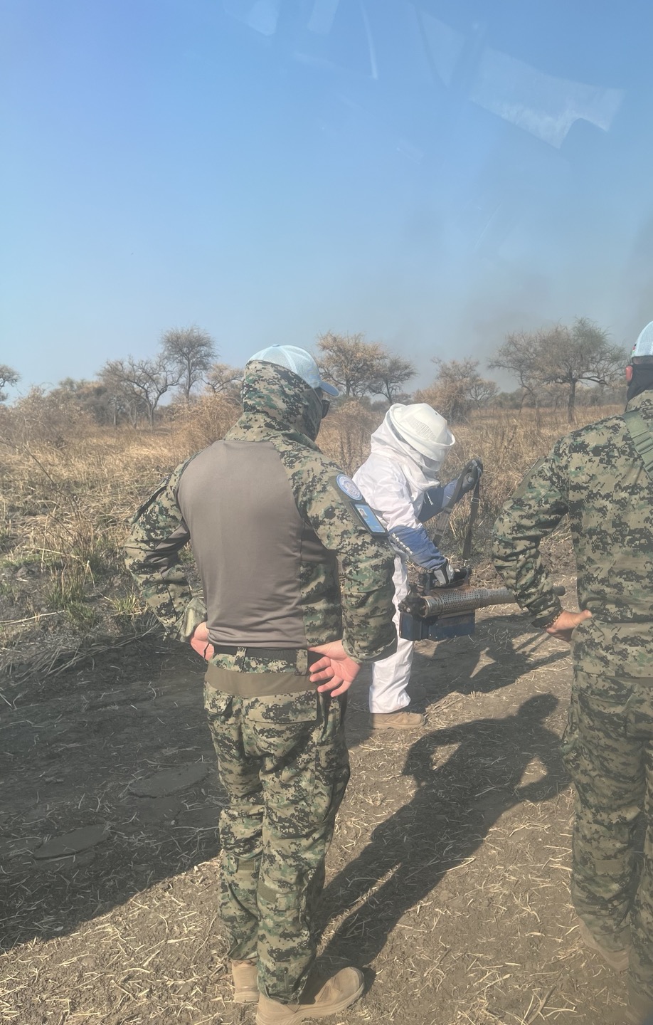 오후 작전을 진행하는데 대규모 습지를 만났다. 당연히 우회로를 만들려 했고 UNMAS가 지뢰 탐지를 하며 꽤 먼 거리를 정찰했지만 근방이 전부 습지였다. 결국 3팀장님이 내일 정밀복구를 하는 판단을 내리셨고 근처에 2차 집적소를 구축했다. 중장비가 집적소 터를 구축하는 동안 UNMAS 직원들과 이야기하며 지뢰 탐지 장비를 구경했다. 대장님이 장비를 보더니 한국군에서도 이 장비를 도입해야 한다고 이야기를 하셨다. 그리고 UNMAS 차량에 가젤 사체가 있길래 "오늘 요리해 먹는 거냐?"라고 물어보니 "내 동생이 보관해 달라 했다"라고 대답했다.